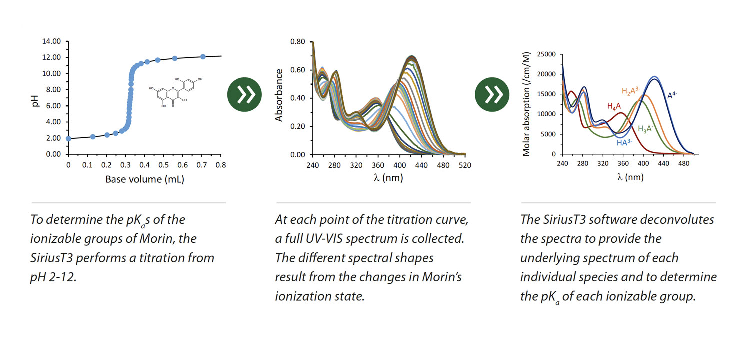 Determine pKₐ values using two techniques: spectrometric (for UV-active compounds) (Fig. 1) and potentiometric (for both UV and non-UV active compounds). With high throughput automated screening capabilities, SiriusT3 can complete up to 80 assays a day.